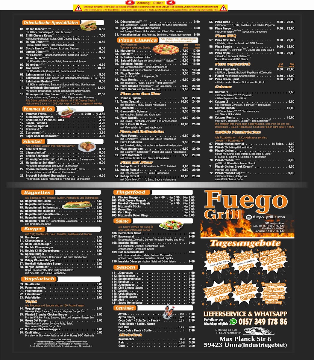 Welcome to Fuego Grill Unna, a vibrant culinary spot nestled in the heart of Unna, Germany. Located at Max-Planck-Straße 6, this restaurant promises a delightful experience with an array of dishes that cater to every palate. Feedback from satisfied customers highlights the exceptional quality of the food, with standout favorites like the crispy schnitzel, juicy burger, and perfectly spiced lahmacun döner. Each dish arrives hot and generously portioned, ensuring a delightful feast for all. The friendly staff further enhances the dining experience, making you feel right at home.